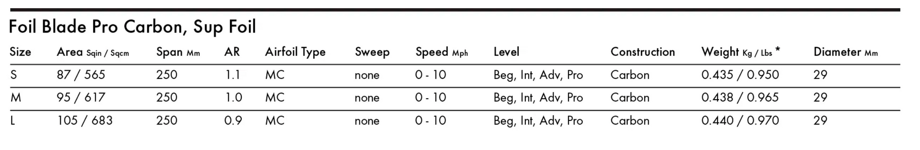 M (Medium): 95 in², 25 cm width. The intermediate size. The M blade provides a balance between efficiency and power, making it suitable for a wide range of conditions and rider sizes. It offers a good combination of stability, power, and cadence.