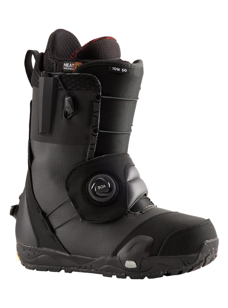 The men's Burton Ion Step On® Snowboard Boots combine the legendary fit and flex of the Ion boot with the intuitive ease of Step On®. The Ion's firm flex supports full-speed-ahead charging. Speedzone lacing and a BOA® adjustable snugger strap provide secure foot hold. Add out-of-the-box comfort, and we're talking about a true step on and go program for riders who like to rip.