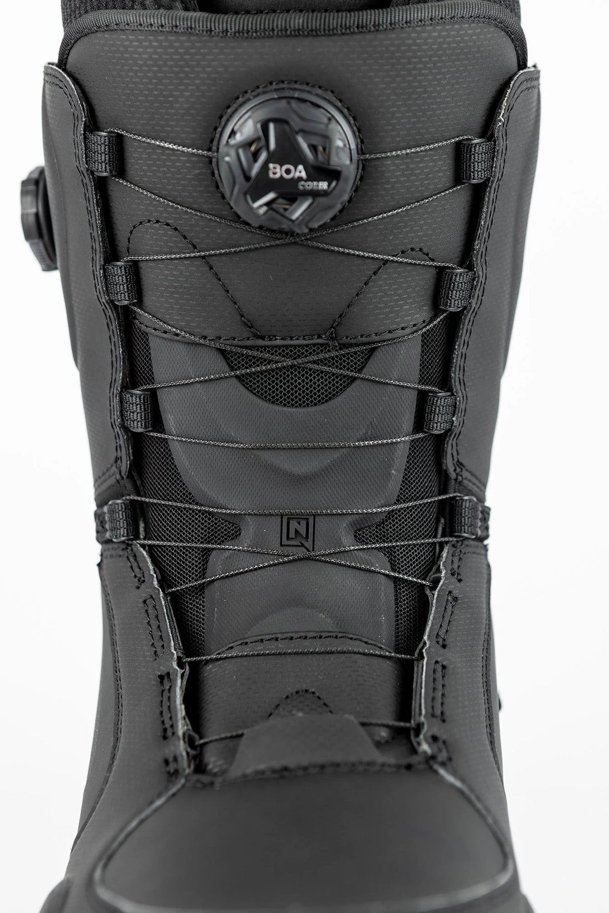 The upper and lower zonal adjustability are ensured by the BOA® Fit System featuring two H-Series Dials with 1:4 mechanical advantage, increasing the speed of entry into the boot. The Dual Zone Configuration allows micro-adjustable precision fit in two separate, distinct zones for greater response and control.