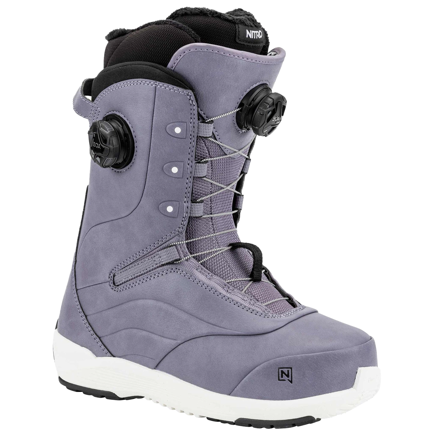The Crown is known as one of the most comfortable and best-fitting boots and has now been upgraded to be even more durable; the women´s Crown snowboard boot helps riders push their limits in any terrain while keeping their feet warm and comfortable. Comfort is crucial, and the Women´s Cloud 6 Liner and Women´s Solo Ortholite® Footbed provide the pro-level fit and response you demand with the comfort you dream about. Nitro´s patented Re/Lace Liner Locker feature allows for effortless customization on the slope at any time. At the same time, the Crown comes in your favorite speed lacing option, which provides you with your preferred smooth and quick lace-up solution. This year the Black and Lilac colorways use recycled rubber to help reduce waste and continue our journey of offering more eco-friendly materials. So do yourself a favor and upgrade your comfort this season with the women´s Nitro Crown snowboard boot.