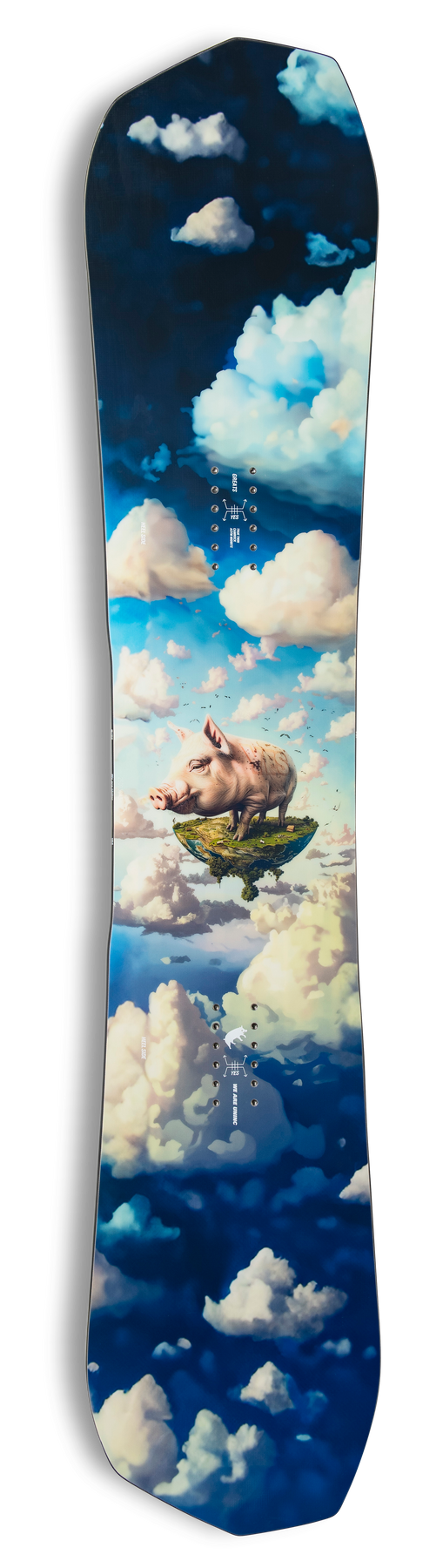 Crafted for all-mountain freestyle domination, the YES. Greats features an innovative asymmetrical twin shape with Asymmetrical MidBite technology for unrivaled edge control. This board brings explosive pop, lightning-fast speed, and a playful attitude, inspired by famous conspiracy theories like AI's potential takeover. The lightest wood-core adds power without adding weight, making it perfect for high-energy riders looking to make a statement on the mountain. From carving tight turns to hitting big jumps and locking in on technical presses, the Greats UnInc. has got you covered.